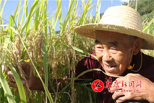 “稻花香里說豐年”。桂花村2組許道生老人,今年雖已87歲高齡,卻精神矍鑠,常年為了家里 “一畝三分地”而辛勤勞作。78歲的老伴很是心疼,在照顧他生活起居的同時(shí),還關(guān)顧著孫子,膝下一兒兩女都忙各自的事,生活也很充實(shí)。面對豐收,老人喜不自禁,自述他種的兩畝水田保守估產(chǎn)將達(dá)3000多斤,用他的話說:“這可是我們嵐皋最好的米,過去還是貢米吶?!?/p>