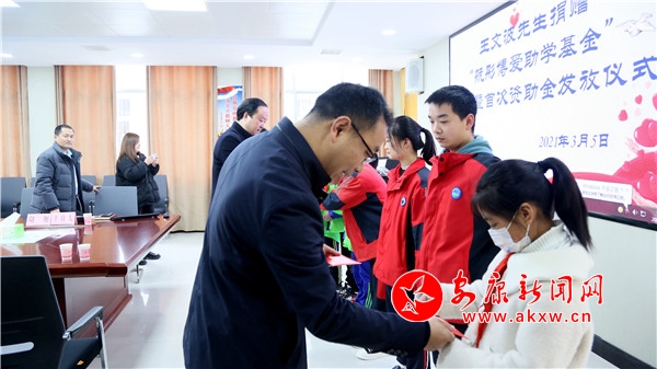 捐贈結(jié)束后,縣委常委、統(tǒng)戰(zhàn)部部長李俊代表縣委、縣政府對王文波先生這種主動擔(dān)當(dāng)作為的善行義舉表示感謝。希望學(xué)生要加倍珍惜這份關(guān)愛,不能因貧而自卑、自暴自棄,而是要把成長路上的磨難當(dāng)做磨煉意志的階梯,自信自強(qiáng),成長成才。希望家長要盡職盡責(zé),幫助孩子成才;希望全體教育人也要常懷感恩之心,常存感激之情,珍惜今天良好的辦學(xué)條件,把社會各界的支持和鼓勵化作無窮的動力,不斷提升教育教學(xué)質(zhì)量,潛心鉆研教學(xué),以實實在在的業(yè)績回報組織、社會和企業(yè)家的關(guān)心和厚愛。最后,李俊要求:紅十字會、教體科技局以及家長要按照捐贈人意愿,公開、透明、規(guī)范管理捐贈善款,及時、準(zhǔn)確將善款用于愛心助學(xué),讓捐贈人放心,讓品學(xué)兼優(yōu)的貧困孩子受益。
