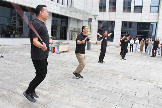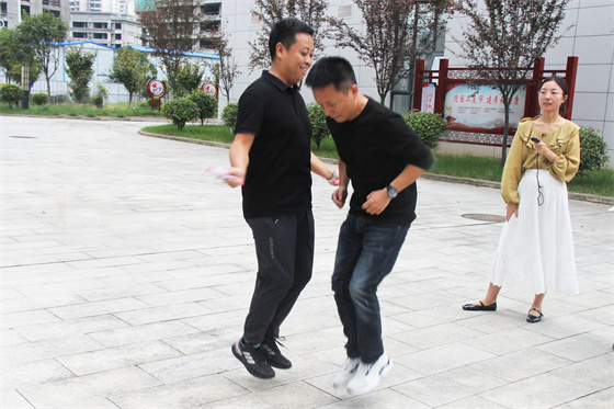 當(dāng)然比賽中還有許多“小插曲”,有的選手鞋帶松了,有的選手繩子扭了,有的選手眼鏡掉了,有的選手被大繩打到疼得哇哇叫,但正是因為有了這些小插曲,才讓參與者的笑聲更響,讓這場比賽變得更生動有趣,也讓“快樂工作、幸福生活”這句話有了最真實的體現(xiàn)。