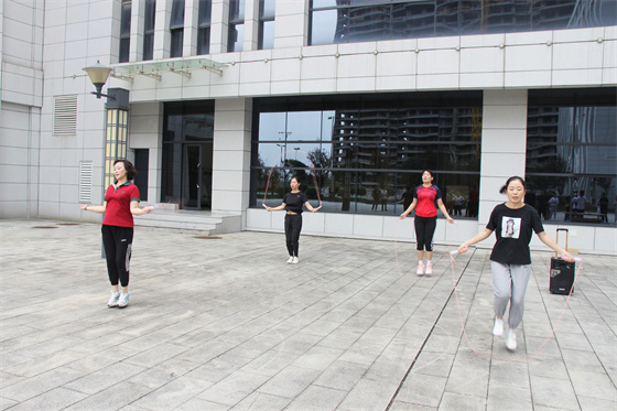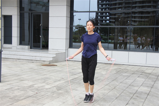 整場比賽分為“單人跳繩”、“雙人跳繩”、“集體跳繩”三個項目,以科室為單位自選項目,職工自由組合,在各項目規(guī)定時間內(nèi)以完成數(shù)量多少決出名次。
