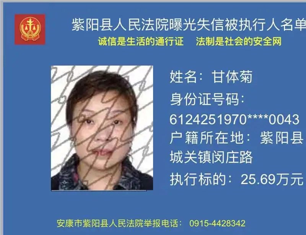 曝光失信 | 紫陽(yáng)縣人民法院:關(guān)于敦促甘體菊履行法定義務(wù)的公告