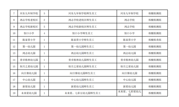 恒口示范區(qū)中心城區(qū)重點(diǎn)人群:一是黨政機(jī)關(guān)、企事業(yè)單位返崗人員、中小學(xué)校。幼兒園返校人員;二是“五一”假期有市域外旅居史人員;三是41類重點(diǎn)人群;四是市域外來(lái)恒返恒核酸檢測(cè)結(jié)果超過(guò)48小時(shí)人員;五是愿檢人員。