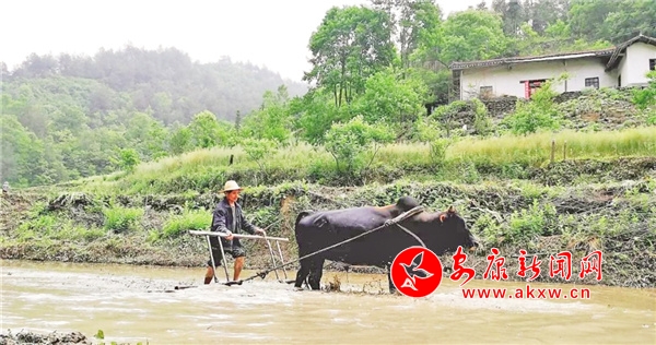 聽說要請他給我們講恒口貢米的故事,他煞有介事地愣了愣,說帶我們去田間看看,再講。過了春分,耕種的土地上,我們感受到的是“農家少閑月,五月人倍忙”的景象!在這里,沒有轟隆隆的機器聲,只用耕牛犁田,育苗平整,農忙的身影在正暖的春陽與如織的細雨中穿梭。