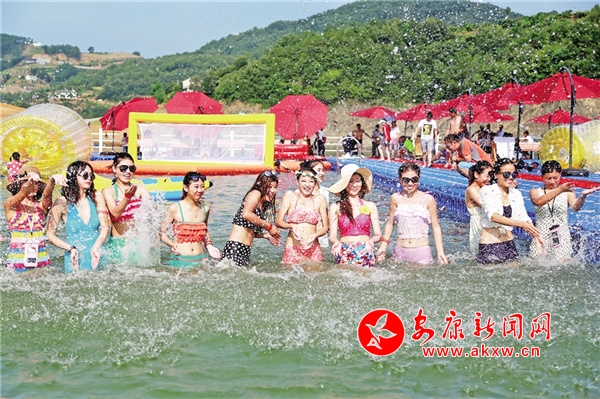 瀛湖的初夏,萬(wàn)千變化。清晨,山和水還在夢(mèng)中酣睡,一輪紅日從東面湖的盡頭沐浴而出,爬上山頭,霞光染紅了湖水,染紅了天空,湖面顯得更加清幽。傍晚,落日熔金,給群山鍍了一層金邊。此時(shí),群鳥(niǎo)歸隱,群魚(yú)入眠。江風(fēng)攪動(dòng)湖水,湖面波光瀲滟,明麗動(dòng)人。晚歸的漁民搖著一葉扁舟在寂靜的湖面上飄蕩,成為畫(huà)中最美的風(fēng)景。習(xí)習(xí)涼風(fēng)也吹散了白日的暑熱,舒適愜意,是休閑避暑的好去處。若遇雨天,天地間扯起絲絲銀線(xiàn),水天一色,如煙如霧,籠罩在瀛湖上空。那若有若無(wú)輕煙一樣的雨霧輕盈地飄蕩在湖面上、群山間,翠屏山莊上的亭臺(tái)水榭、湖心碧螺島上的螺峰塔,全都沐浴在水蒙蒙的輕紗中,如夢(mèng)似幻?!拔魅角鞍橈w,桃花流水鱖魚(yú)肥。青箬笠,綠蓑衣,斜風(fēng)細(xì)雨不須歸?!贝藭r(shí),湖里的魚(yú)兒成群結(jié)隊(duì)地游出水面透氣,正是釣魚(yú)的最佳時(shí)機(jī),湖邊不少垂釣愛(ài)好者正興致勃勃地冒雨釣魚(yú),完全不顧雨已打濕了衣服。湖中,一葉葉漁舟和游船在雨中漫游,幽幽絲竹之聲從游船中飄出,像游走在煙雨迷蒙的江南水鄉(xiāng)。