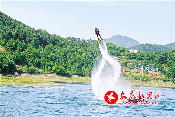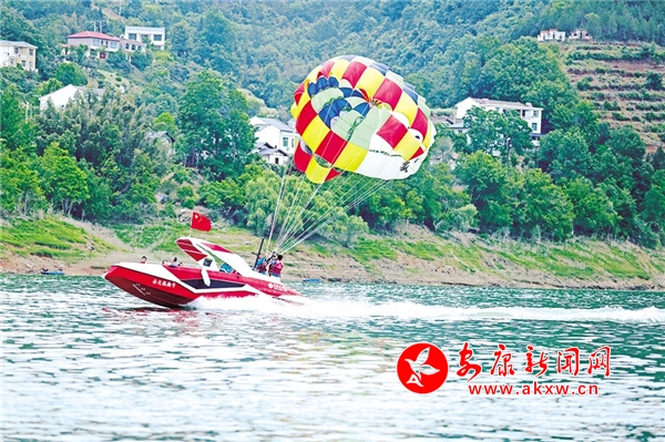 休閑勝地翠屏島,最大的亮點(diǎn)是玉清橋的彩虹瀑布,游客從橋下經(jīng)過(guò),感受“瀛湖之水天上來(lái)”的曼妙,這也是瀛湖為游客送上的初夏第一絲清涼。橋頭幸福的天梯、鳥(niǎo)巢,成為排隊(duì)拍照的絕佳點(diǎn)位。運(yùn)動(dòng)場(chǎng)上,滾鐵環(huán)、射箭、投壺、打籃球,讓游客流連忘返。兒童樂(lè)園旁,微型爆米花機(jī)勾起了孩子們參與的興趣,彩繪激發(fā)了孩子們的繪畫(huà)熱情。瀛湖水上嘉年華,精彩刺激的水上項(xiàng)目帶給游客酣暢的體驗(yàn),游客紛紛直呼“過(guò)癮”!