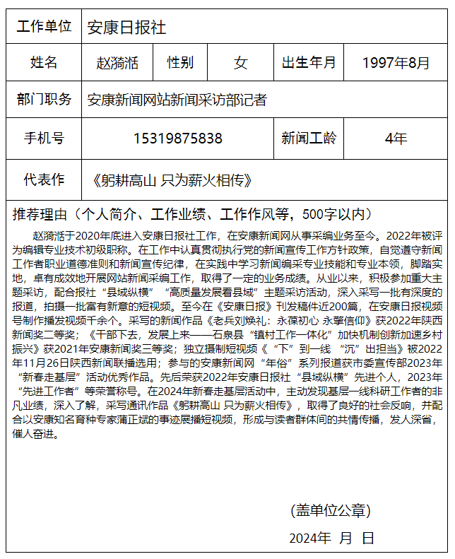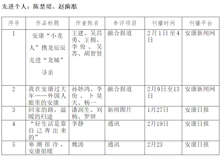 安康日報(bào)社擬參評2024年“新春走基層”先進(jìn)個人及新聞作品公示
