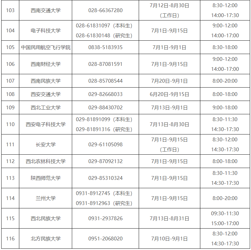 受理時間:7月1日-9月15日(工作日)8:00-12:00 15:00-18:00