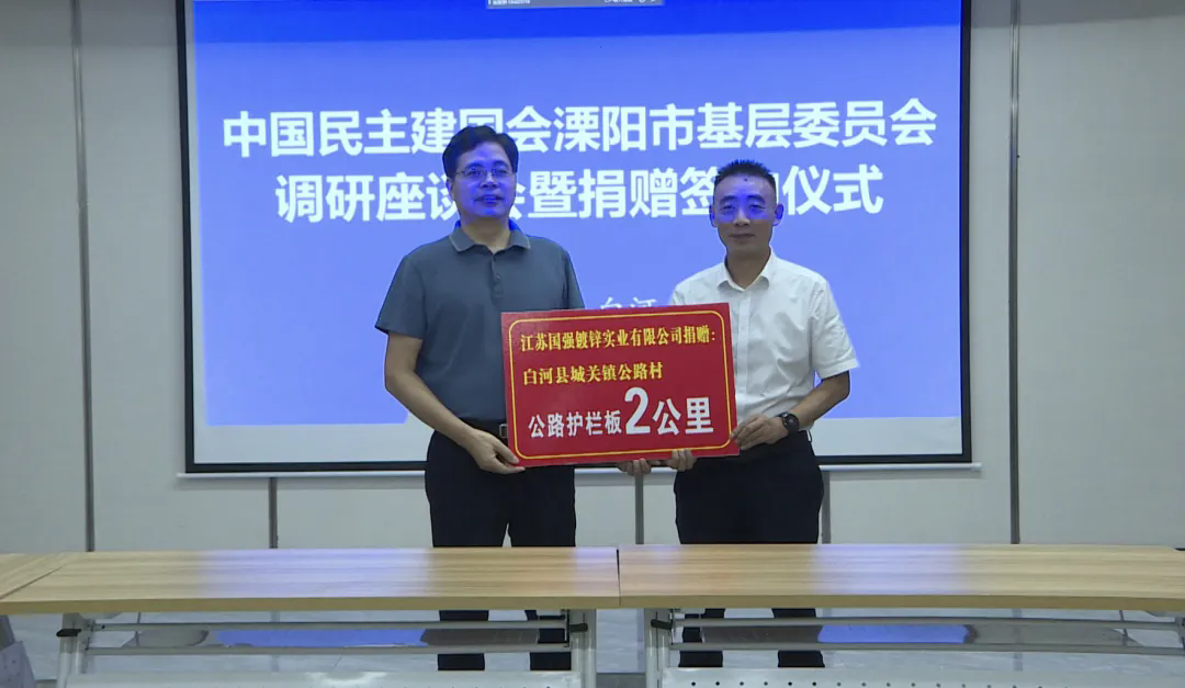 在座談會上,民建溧陽基層委員會向白河慈善協(xié)會捐贈5萬元幫扶資金,會員企業(yè)江蘇國強鍍鋅實業(yè)有限公司為城關鎮(zhèn)公路村捐贈了全長2公里的公路護欄板,會員企業(yè)溧陽暢享互聯(lián)網(wǎng)科技有限公司與白河縣電子商務公共服務中心簽訂了戰(zhàn)略合作協(xié)議。