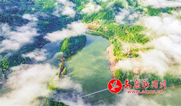 穿過密林,移步水邊,小島早已與一汪碧水融為一體,綠瑩瑩的水環(huán)繞著小島,島以水為鏡,水以島為景。此時的小島猶如一位漂亮的村姑,靜靜地欣賞著水中的倩影。汪汪碧水、陣陣鳥鳴、悠悠藍(lán)天,讓人不自覺地斂聲屏氣,生怕打亂這寧靜風(fēng)景,那就只好用心去感受欣賞了。