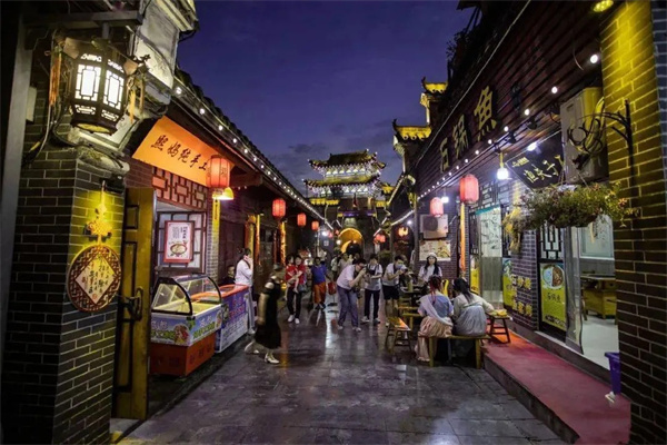 飯后,我們就著清涼的晚風(fēng),隨著熙熙攘攘的人流,欣賞古城的夜景。眼前這街巷、這古塔,這城樓、這游人,這燈火輝煌,仿佛都已不是現(xiàn)實(shí)中的實(shí)物,宛若穿越時(shí)空隧道的精靈,在漫無涯際的天地里浮游。迎面走過來七八個(gè)穿漢服的小姑娘,手里都提著一盞五顏六色的琉璃燈,閃閃爍爍,熠熠生輝,為這美好的夜晚平添了一份古意,一份韻味。