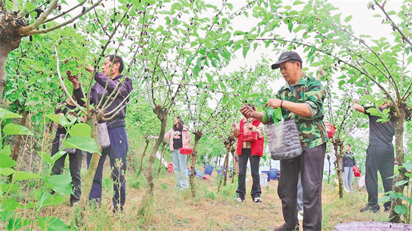 劉術(shù)榮的桑樹枝繁葉茂,桑葚掛滿枝頭,吸引了市民和游客觀光采摘。他每天請(qǐng)了十幾名工人幫忙,抓緊時(shí)間采收桑葚。經(jīng)過(guò)科學(xué)管護(hù),這片果桑園每年能產(chǎn)桑葚超過(guò)20噸,帶動(dòng)30余戶村民實(shí)現(xiàn)穩(wěn)定增收。