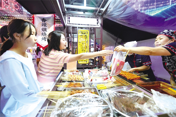 生態(tài)資源賦能場景體驗。寧陜縣森林覆蓋率96.24%,居全國第一,負氧離子濃度超世衛(wèi)組織標準3倍,榮膺“中國天然氧吧”稱號?!按骞獯蟮馈被顒由疃燃藿由鷳B(tài)優(yōu)勢,主打“21℃的夏天·清涼寧陜”體驗,將濱河公園舞臺與山林溪流自然聲景融合,夜間山風伴隨演出的沉浸式場景獲游客好評。同步開設的“秦嶺山珍大集”“有好市小吃一條街”30余個展位展銷寧陜臘肉、羊肚菌、香菇;美食區(qū)現(xiàn)做洋芋糍粑、玉米鍋巴、麻辣豆腐干吸引游客頻頻駐足,形成“觀演+嘗鮮”閉環(huán)體驗。