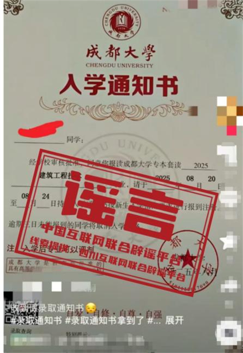 教育部多次提醒,部分機(jī)構(gòu)和個(gè)人打著普通高等學(xué)歷教育幌子,實(shí)際卻為自考助學(xué)、網(wǎng)絡(luò)教育等其他教育形式,或進(jìn)行虛假宣傳。如未通過(guò)高考招生錄取獲得正式通知書(shū),無(wú)法注冊(cè)普通高校正式學(xué)籍,也無(wú)法取得普通高等學(xué)校學(xué)歷證書(shū)??忌凹议L(zhǎng)應(yīng)通過(guò)正規(guī)渠道核驗(yàn)錄取信息,嚴(yán)格保護(hù)個(gè)人信息,防止被不法分子利用。(來(lái)源:四川互聯(lián)網(wǎng)舉報(bào)辟謠平臺(tái)、成都網(wǎng)絡(luò)辟謠)