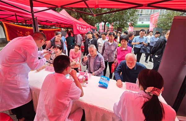 隨后的專家義診環(huán)節(jié),市級醫(yī)療機構內科、骨科、眼科等專家現場坐診,為居民問診查體、答疑解惑,群眾有序排隊,場面溫馨。互動體驗區(qū)同樣熱鬧,急救知識演練、八段錦教學、推拿拔罐等項目,讓居民在動手實踐中提升健康素養(yǎng)?!翱床?、學養(yǎng)生操,還聽了政策宣講和革命故事,這活動太實用了!”剛結束義診的居民笑著說。參與專家也表示,深入基層服務群眾、傳播健康理念,是一次非常有意義的實踐。