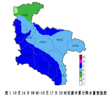 10月16日:陰天轉(zhuǎn)大雨,寧陜、石泉、漢陰、紫陽、嵐皋、漢濱北部、旬陽北部局地暴雨(25~60毫米,局地可達(dá)70毫米以上);
