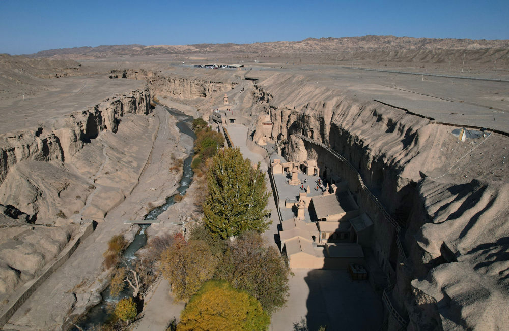 ??位于甘肅瓜州縣的榆林窟(2025年10月31日攝,無人機照片)。