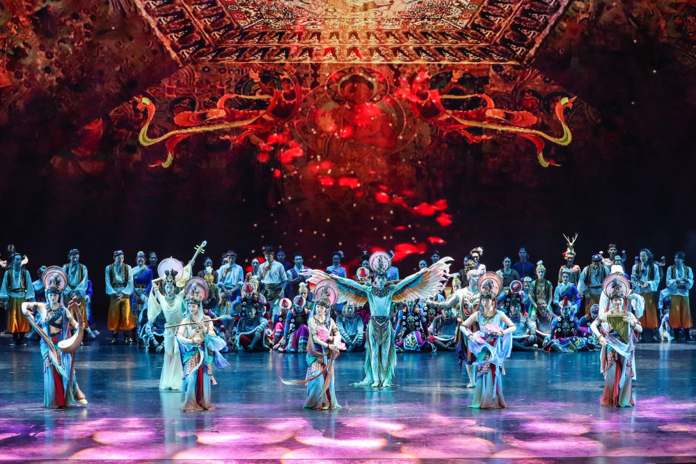 ??2025年9月20日,演員在敦煌大劇院表演新版《絲路花雨》。1979年,大型民族舞劇《絲路花雨》在中國西北誕生。編創(chuàng)者們從敦煌莫高窟的壁畫和彩塑中尋找靈感,將壁畫上凝固了千年的舞姿,轉(zhuǎn)化為動態(tài)舞蹈語言。40多年來,《絲路花雨》累計演出超4000場,足跡遍布40多個國家和地區(qū),被譽為“中國舞劇的里程碑”和“活的敦煌壁畫、美的藝術享受”。此次新版歷經(jīng)兩年半創(chuàng)排,通過復原與創(chuàng)新對經(jīng)典藝術進行當代詮釋,彰顯了中華優(yōu)秀傳統(tǒng)文化的生命力。