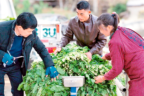 本網(wǎng)訊(通訊員 劉威 安少晨)正值冬季,紫陽縣煥古鎮(zhèn)劉家河村的田野上涌動(dòng)著別樣的熱鬧。放眼望去,野油菜連成一片綠色海洋,肥厚的菜葉在陽光下泛著鮮亮的光澤。田間地頭,村民們挎著竹籃、推著小車,彎腰采摘、麻利打捆;不遠(yuǎn)處的加工廠房里,分揀、清洗、稱重、裝壇的流水線有條不紊,勾勒出一幅“田間忙采收、車間忙加工”的豐收畫卷。
