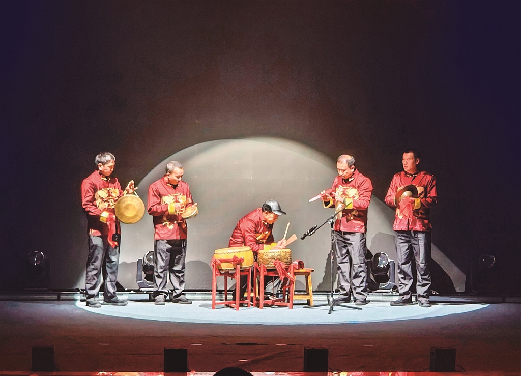 2025年12月30日晚,紫陽縣舉辦萬“紫”千紅啟新程·同心向“陽”譜華章—2026年元旦文藝晚會暨文共體建設成果匯演。圖為《戲曲鑼鼓》節(jié)目表演。 儲茂銀 攝