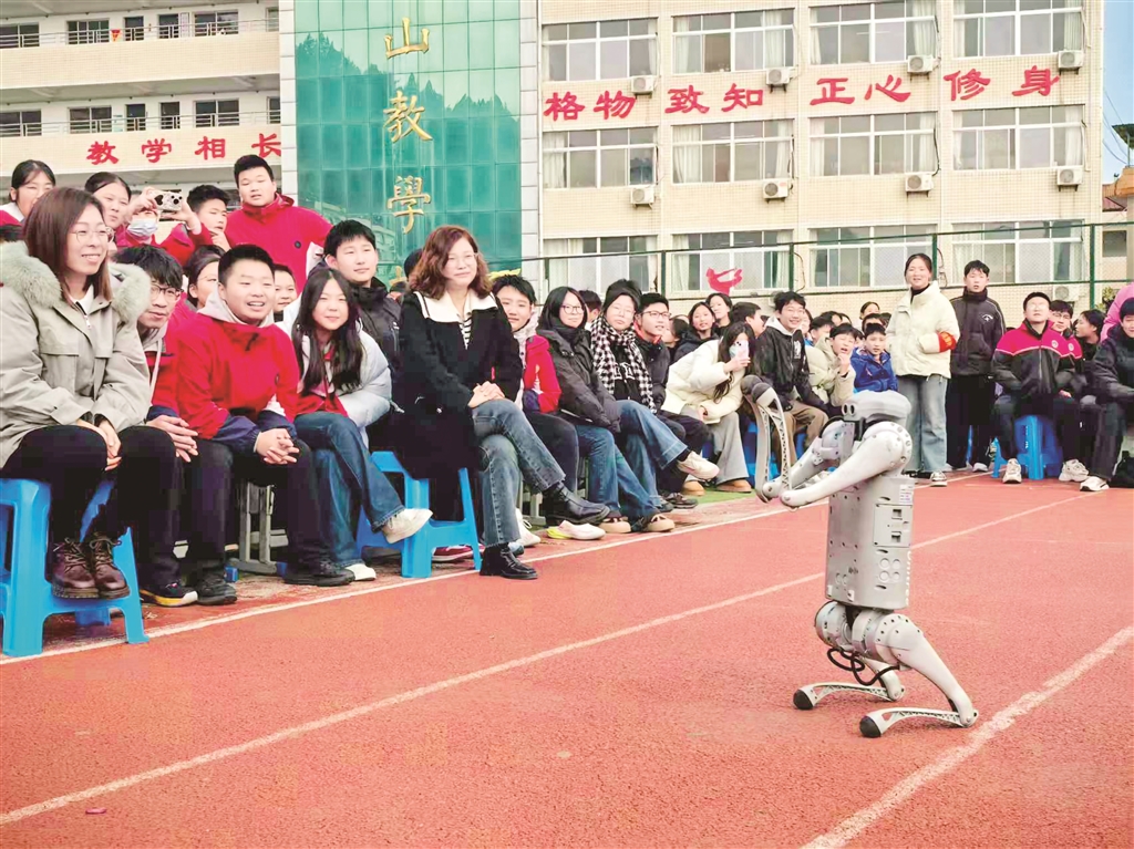 校園科技文化藝術(shù)節(jié)上機(jī)器人與學(xué)生互動(dòng)