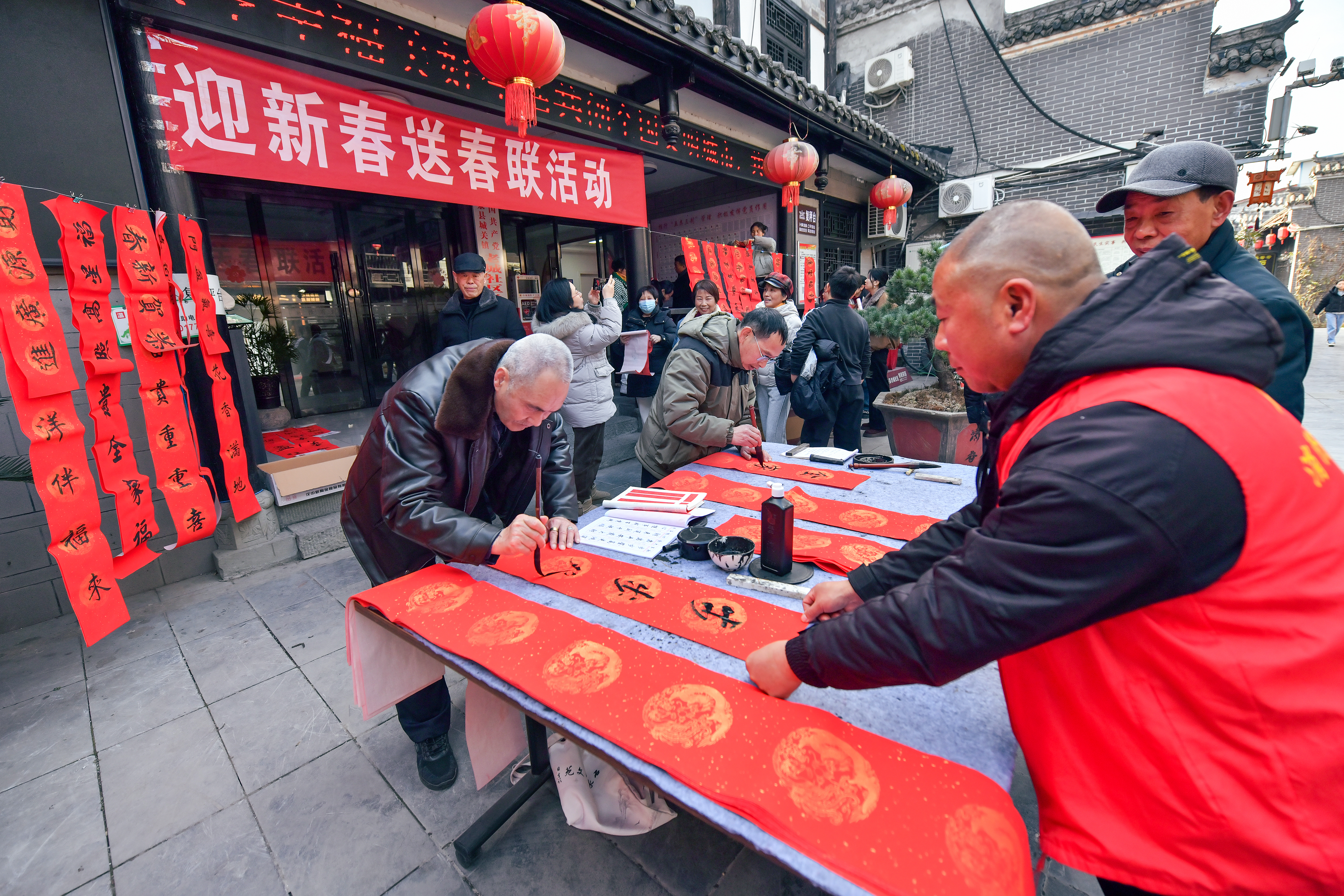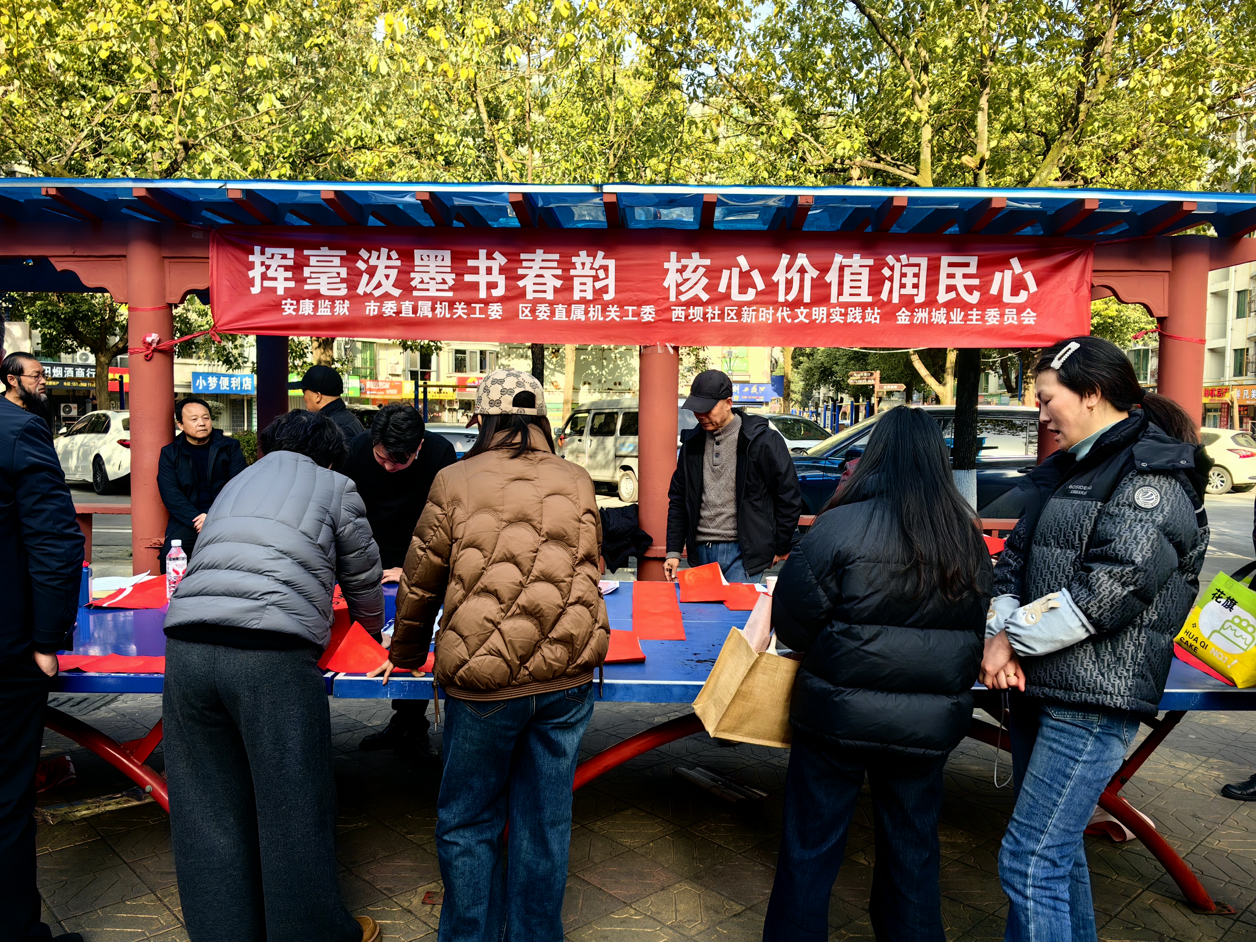 2月2日下午,安康監(jiān)獄、市委直屬機(jī)關(guān)工委、區(qū)委直屬機(jī)關(guān)工委、漢濱區(qū)西壩社區(qū)新時(shí)代文明實(shí)踐站組織市區(qū)書(shū)法家在金洲城小區(qū)為群眾義寫(xiě)春聯(lián)。 鄭時(shí)根 攝