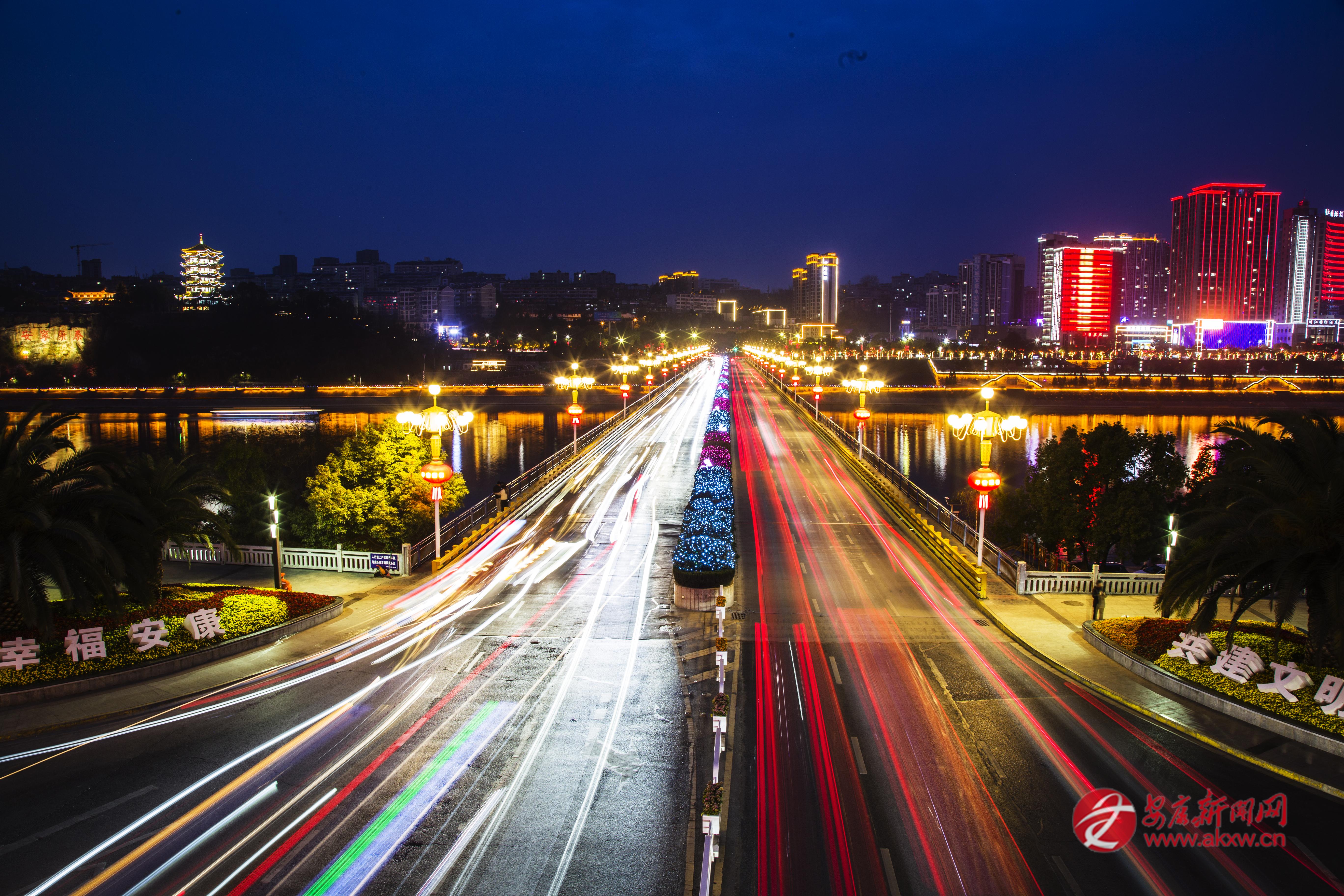 2月22日傍晚,中心城區(qū)漢江一橋流光溢彩,盡顯城市活力與新春喜慶。 張炳實(shí) 攝