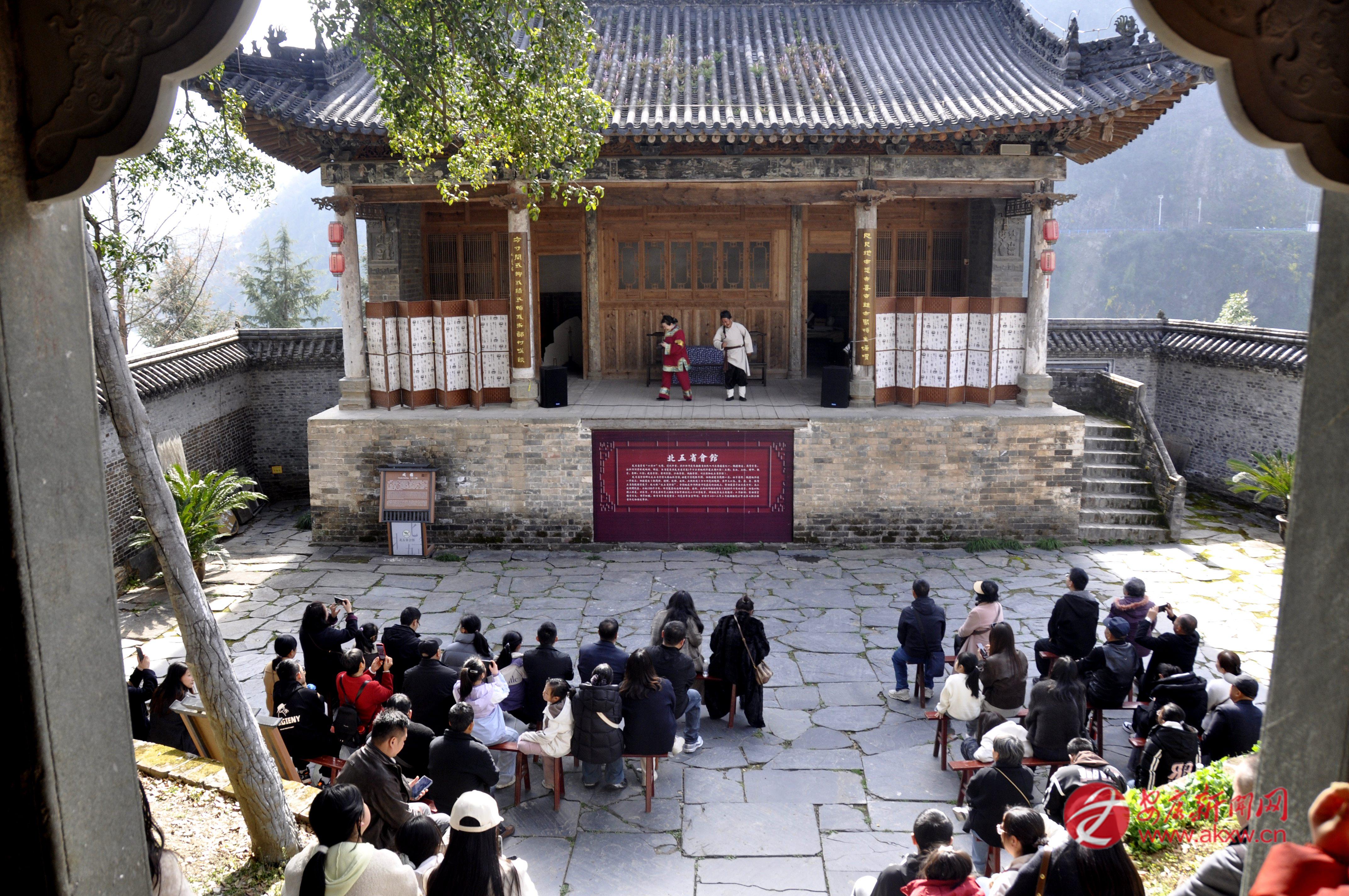 為豐富群眾的精神文化生活,2月22日,紫陽(yáng)縣在北五省會(huì)館開(kāi)展了主題文化活動(dòng)。圖為歌劇《王二嫁嫂》專場(chǎng)演出,吸引眾多游客駐足欣賞。彭召伍 攝