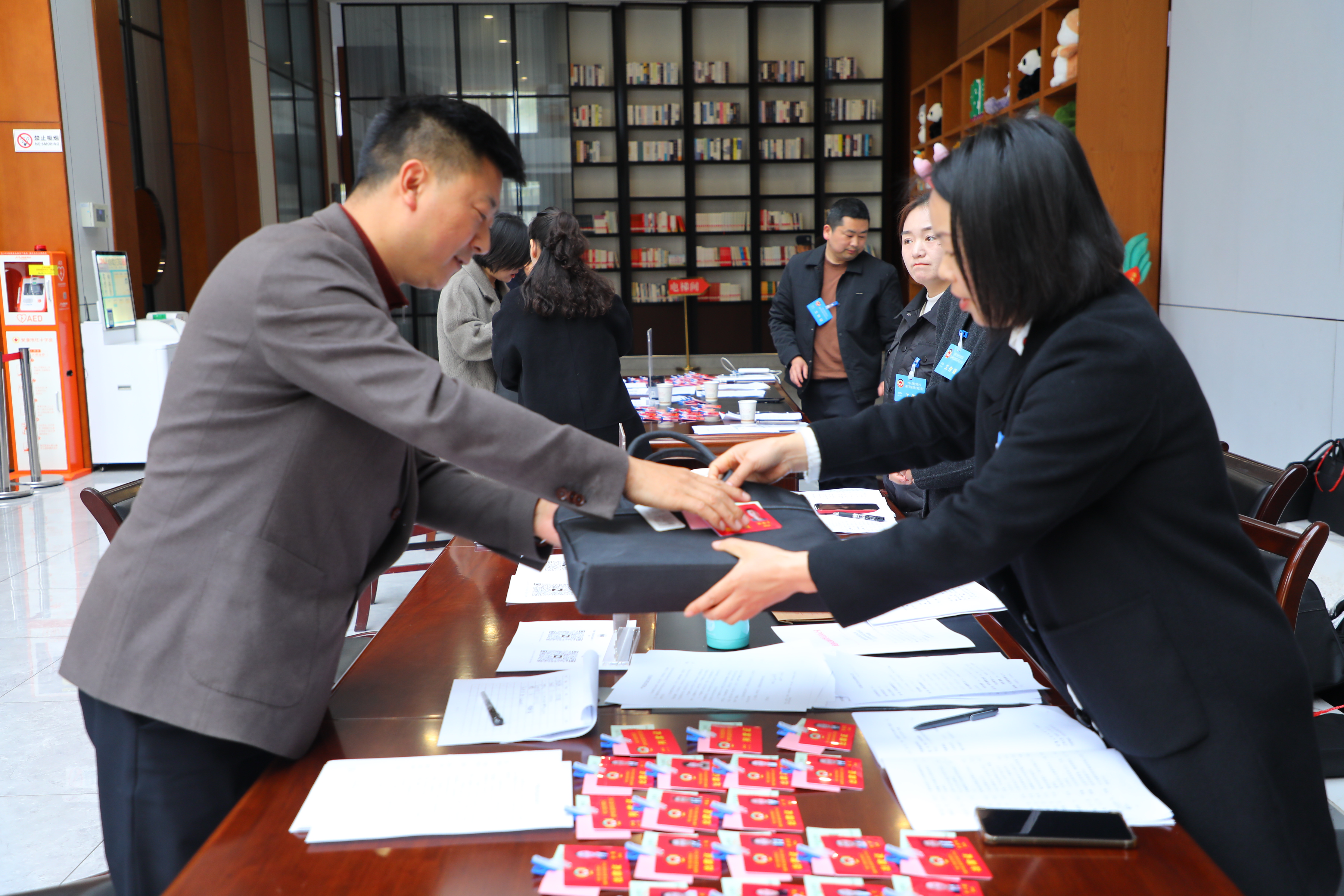 工作人員緊張有序地開展簽到、材料發(fā)放等工作。委員們快速完成報到程序,將出席證佩戴于胸前。他們將積極履職盡責(zé),傳遞民聲、建言獻(xiàn)策,為安康高質(zhì)量發(fā)展注入新動能。