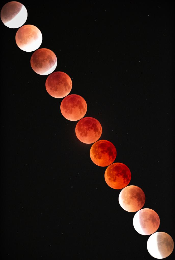 如何觀測和拍攝這輪“紅月亮”?蔣晨明告訴記者,與日食不同,月食可以直接用肉眼觀測,無需佩戴任何防護(hù)設(shè)備;如果有望遠(yuǎn)鏡,可以看清月亮表面陰影、環(huán)形山、“紅月亮”層次,效果壯觀震撼;喜歡攝影的朋友可以使用專業(yè)相機(jī)或手機(jī)針對各階段的月亮形態(tài)分別拍攝,做延時拍攝還可以還原月食的全過程。