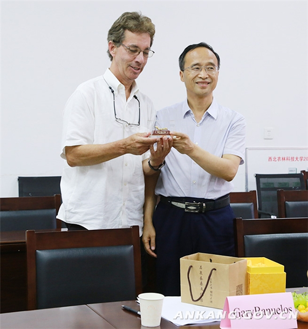 最后,魯琦誠摯邀請Gary Banuelos博士到安康指導(dǎo)富硒產(chǎn)業(yè)發(fā)展及硒科學(xué)研究,并向其贈送了具有安康特色的鎏金銅蠶紀(jì)念品。