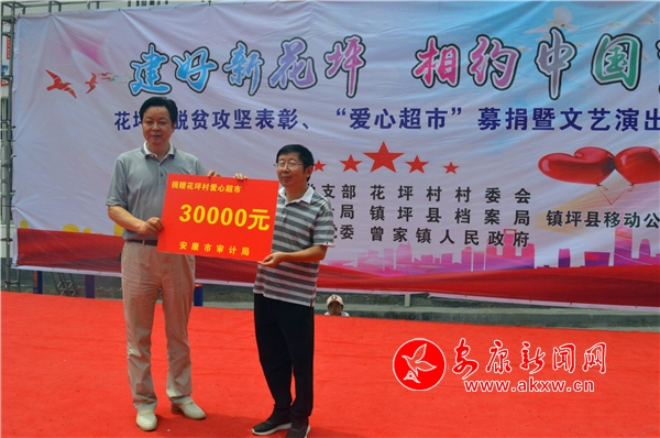 安康新聞網(wǎng)訊(通訊員 陳東青)7月26日上午,鎮(zhèn)坪縣曾家鎮(zhèn)花坪村人聲鼎沸,比三伏天的酷暑更加火熱,比過春節(jié)的氣氛更加熱烈。由市審計局、鎮(zhèn)坪縣檔案局、縣移動公司等市縣幫扶部門協(xié)辦的花坪村脫貧攻堅表彰大會暨愛心超市募捐活動正在村委會前的活動廣場舉行。會上對花坪村的“致富帶頭人”“勤勞致富模范”等脫貧攻堅和“五凈家庭”“孝老愛親模范”“好媳婦”“優(yōu)秀共產(chǎn)黨員”等踐行新民風典型進行了表彰獎勵;顒蝇F(xiàn)場還為村上愛心超市募集捐款10.4萬元。