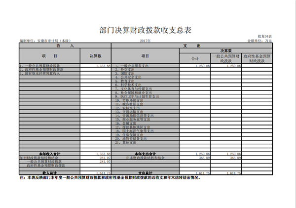 安康市審計(jì)局2017年部門決算公開說明