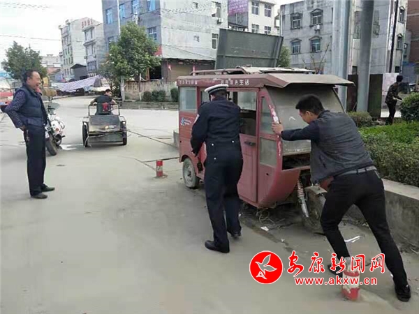 張灘中隊(duì)在巴山東路棗園段拖移僵尸車(chē)