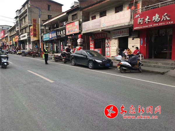 江北中隊加強(qiáng)中渡路違停、占道經(jīng)營亂點整治,確保道路暢通有序。