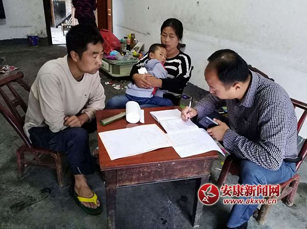 市信訪局駐村工作隊隊長楊先彩和第一書記胡珂入戶核算貧困戶自建房成本。