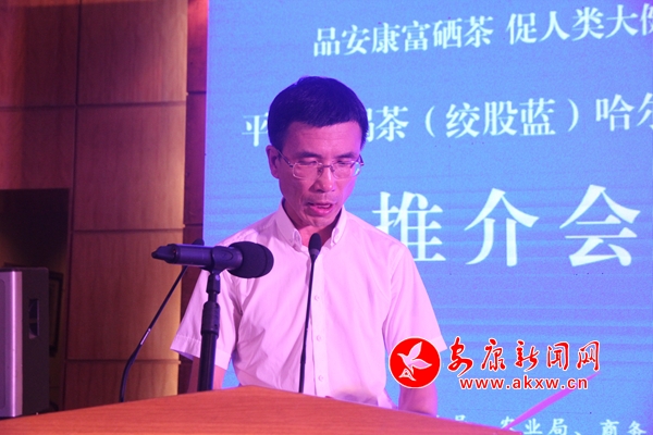 魯琦在致辭中對(duì)安康的區(qū)位、人文、生態(tài)、資源進(jìn)行了介紹。他指出,安康市委、市政府把富硒茶產(chǎn)業(yè)作為為全國(guó)人民健康服務(wù)的健康產(chǎn)業(yè)、農(nóng)業(yè)特色產(chǎn)業(yè)的首位產(chǎn)業(yè)和農(nóng)民脫貧致富的當(dāng)家產(chǎn)業(yè),舉全市之力做大做強(qiáng)安康富硒茶產(chǎn)業(yè)。此次“安康富硒茶東北三省送健康”哈爾濱招商推介活動(dòng),旨在搭建茶企貿(mào)易合作和經(jīng)貿(mào)交流平臺(tái),讓更多的人了解安康富硒茶,了解硒對(duì)人體健康不可或缺的作用。安康誠(chéng)摯歡迎各界朋友、客商來(lái)安康開(kāi)發(fā)富硒資源,投資富硒產(chǎn)業(yè),齊為黑龍江人民群眾的健康和陜茶振興做出貢獻(xiàn)。