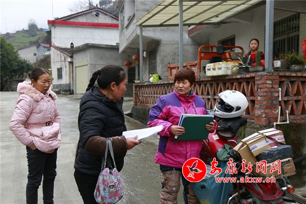 “雷康軍在家嗎?”趙明翠敲開曾溪鎮(zhèn)大溝村三組村民雷康軍的家門,屋子里火爐燒得很旺。“我爸上街了,趙阿姨趕快來坐,把手暖和一下!”雷康軍的女兒一邊招呼著,一邊倒茶水。“你爸有個包裹要簽收,還有你們家上邊的葛天均也有個包裹麻煩代收一下,我給葛天均打電話他說不在家,讓先放到你們家!”