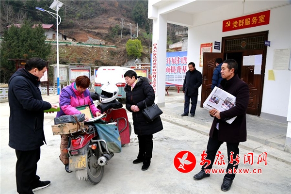下午3點多走到聯(lián)盟村,趙明翠剛把報紙送到村上。村醫(yī)葉平菊就熱情地拉著趙明翠的手說:“山里好多群眾都搬到集中安置點安居了!村衛(wèi)生室都專門聘請的有醫(yī)生了!農(nóng)村婦女都能免費體檢、免費領(lǐng)取相關(guān)婦科藥品了!”趙明翠說:“這要感謝黨和國家的好政策!”