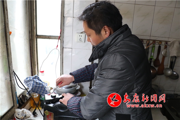 采訪中,“老顧客”、87歲的馬希琴老人打來電話,說自己家的電餅鐺壞了。從修理鋪到漢濱高中家屬院只有幾分鐘的路程,劉得群挎上維修包,再次踏上這條走了近二十年的路。