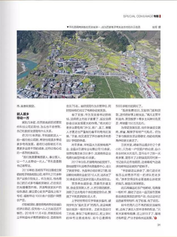 編前語:近年來,平利縣在省市的堅強(qiáng)領(lǐng)導(dǎo)及各方的大力支持下,向貧困發(fā)起總攻,打響脫貧攻堅戰(zhàn),各項工作成效突出,持續(xù)走在全省前列。省委領(lǐng)導(dǎo)要求對平利脫貧攻堅工作好的做法進(jìn)行總結(jié)和推廣,省委組織部和《當(dāng)代陜西》雜志社專程來平利進(jìn)行專題調(diào)研,撰寫系列專題報道《脫貧攻堅平利印象》,并在2019年第2-3期《當(dāng)代陜西》刊登,F(xiàn)將系列文章予以轉(zhuǎn)載,供大家學(xué)習(xí)交流。