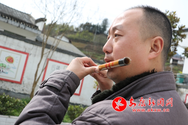 2017年,村上給胡珂和楊先彩在學(xué)校協(xié)調(diào)了兩間房子作為他們的宿舍,閑暇時胡珂會拿起心愛的笛子在學(xué)校的操場上演奏一曲,悠揚(yáng)的笛聲回蕩在村子的上空,其中也寄托著胡珂對妻兒的想念。實習(xí)記者 滕靜 攝