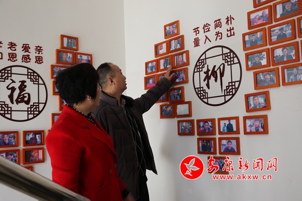 村委會的樓梯道從一樓到二樓的墻上有5個心型照片墻。每張照片都是不同的笑臉,胡珂對每一張照片上的村民都非常了解,一一介紹著。50多歲的王毅夫婦倆;陳慶明兩口子已經(jīng)80多歲了;五保戶周慶發(fā)一輩子沒結(jié)婚,和弟弟住在一起。實習(xí)記者 滕靜 攝