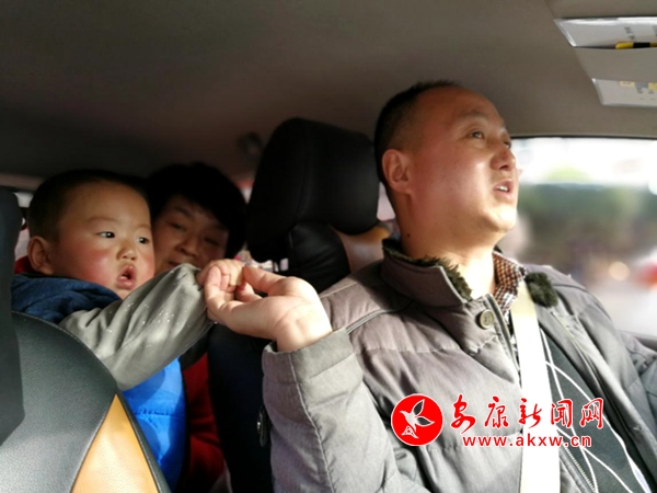 當(dāng)天,赫赫感冒有點(diǎn)不舒服。在回安康的路上,胡珂像之前孩子更小一些的時候,在他哭鬧時捏著孩子的小手安慰他。記者 陳俊 攝