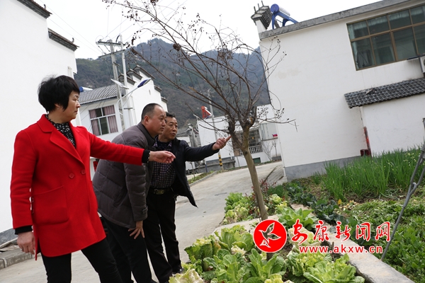 柳林壩環(huán)村路上沿路栽種著紫荊樹,這是2017年下半年村里為美化村容栽種的,花期在每年的七八月份。胡珂、楊先彩和公益崗位人員定期查看樹木生長情況。 實習(xí)記者 滕靜 攝