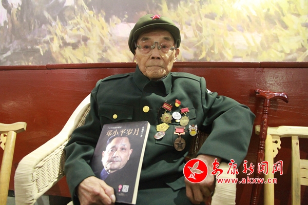 眾人扶著老人坐到堂屋中間的一把藤椅上,老人讓女兒惠正銀拿來軍裝、軍帽穿戴整齊,嘴里還嘟囔著“書……書……”惠正銀會意地給老人遞上《鄧小平歲月》一書,老人面露欣喜,一直抱在懷里。惠正銀告訴記者,老人僅有小學文化,很多字都是在當兵時學的,但他很愛學習,這本書他經(jīng)常會翻著看一看。