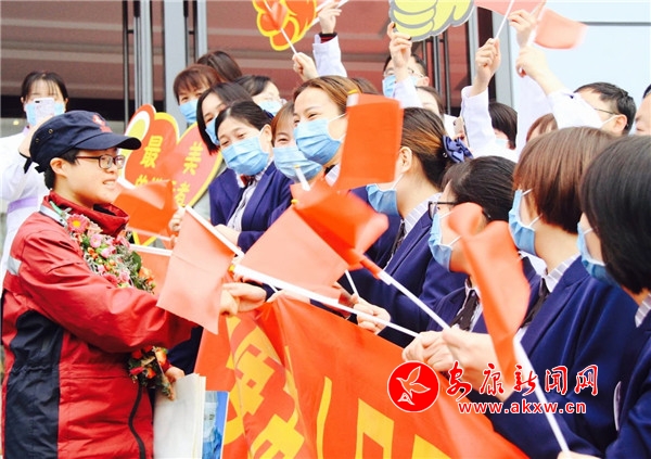座談會溫馨、簡短,走出會議中心,歡迎英雄歸來的隊伍仍等在原地,他們揮動著旗子,喊著口號,急切地將援鄂英雄們擁到人群中間,讓相機定格這勝利、喜悅的一刻。