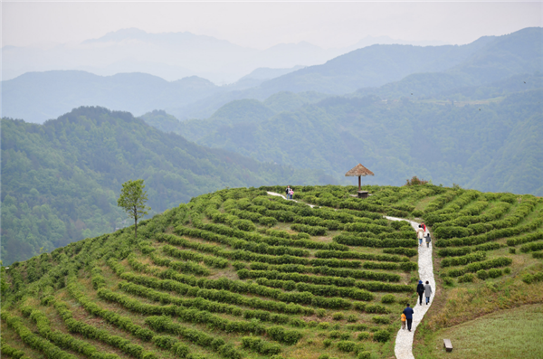 ↑平利縣老縣鎮(zhèn)蔣家坪村的茶業(yè)現(xiàn)代示范園區(qū)(4月22日攝)。