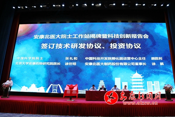 會上還簽訂了院士技術(shù)研發(fā)合作協(xié)議和投資合作協(xié)議。在隨后的科技創(chuàng)新報告會上,北京大學(xué)藥學(xué)院教授劉俊義、北京大學(xué)安康藥物研究院教授徐世明和中國科技開發(fā)院孵化器運營中心主任顏勝利分別作了學(xué)術(shù)報告。市直有關(guān)部門負(fù)責(zé)同志、安康北醫(yī)大合作企業(yè)代表以及安康學(xué)院師生代表等300余人現(xiàn)場聆聽學(xué)習(xí)。