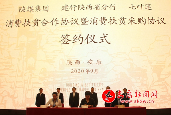 簽約儀式上,中國建設(shè)銀行陜西省分行、中茶公司、陜煤集團(tuán)、陜體集團(tuán)等分別與我市相關(guān)縣區(qū)及帶貧企業(yè)現(xiàn)場(chǎng)簽訂項(xiàng)目開發(fā)、消費(fèi)扶貧協(xié)議;中國建設(shè)銀行東京分行、納閩分行,香港金訊集團(tuán)等境外分支機(jī)構(gòu)及企業(yè)分別與我市帶貧企業(yè)通過遠(yuǎn)程視頻方式簽訂戰(zhàn)略合作、產(chǎn)品購銷協(xié)議。