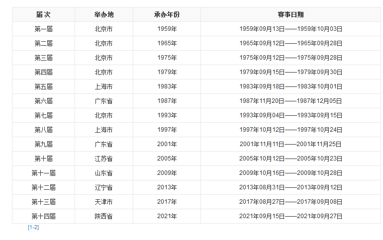 中華人民共和國(guó)全國(guó)運(yùn)動(dòng)會(huì),簡(jiǎn)稱“全運(yùn)會(huì)”。全國(guó)運(yùn)動(dòng)會(huì)是中國(guó)國(guó)內(nèi)水平最高,規(guī)模最大的綜合性運(yùn)動(dòng)會(huì)。全運(yùn)會(huì)的比賽項(xiàng)目每屆都會(huì)有微調(diào),除武術(shù)外,基本與奧運(yùn)會(huì)相同。其原意是為國(guó)家的奧運(yùn)戰(zhàn)略鍛煉新人、選拔人才。全運(yùn)會(huì)每四年舉辦一次,一般在奧運(yùn)會(huì)年前后舉行。首屆全運(yùn)會(huì)1959年 在北京舉辦。前九屆全運(yùn)會(huì)由北京、上海、廣東三地輪流舉辦。2001年初,國(guó)務(wù)院辦公廳正式發(fā)布了《關(guān)于取消全國(guó)運(yùn)動(dòng)會(huì)由北京、上海、廣東輪流舉辦限制的函》。